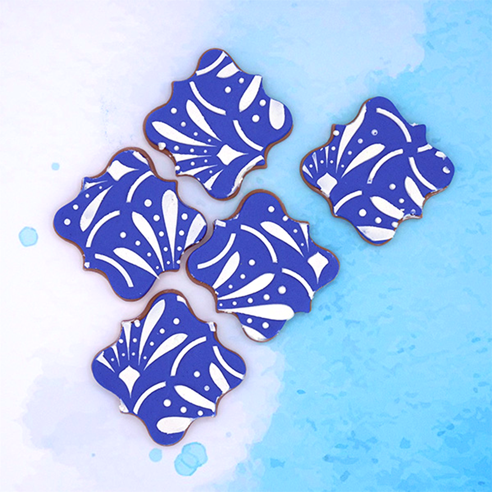 1. Aplique o Stencil sobre a superfície de um bolo/bolacha que já tenha alguma cobertura seca ou firme.