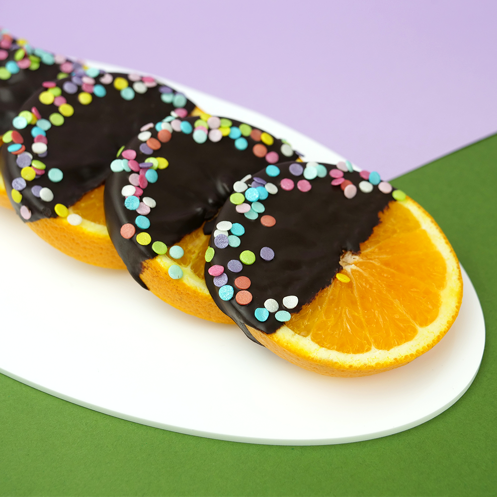 Confettis de açúcar de cores brilhantes com aproximadamente 3mm, para decoração de bolos, bolachas, cupcakes, cake pops, donuts, sobremesas e outras preparações.