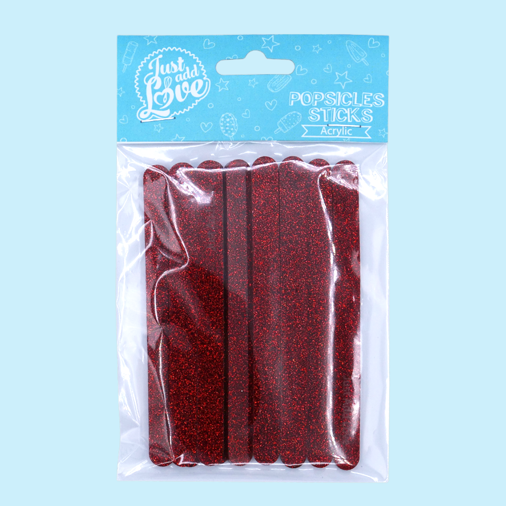 Popsicles Sticks Glitter Vermelho