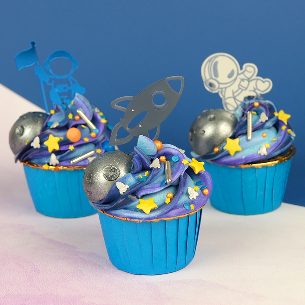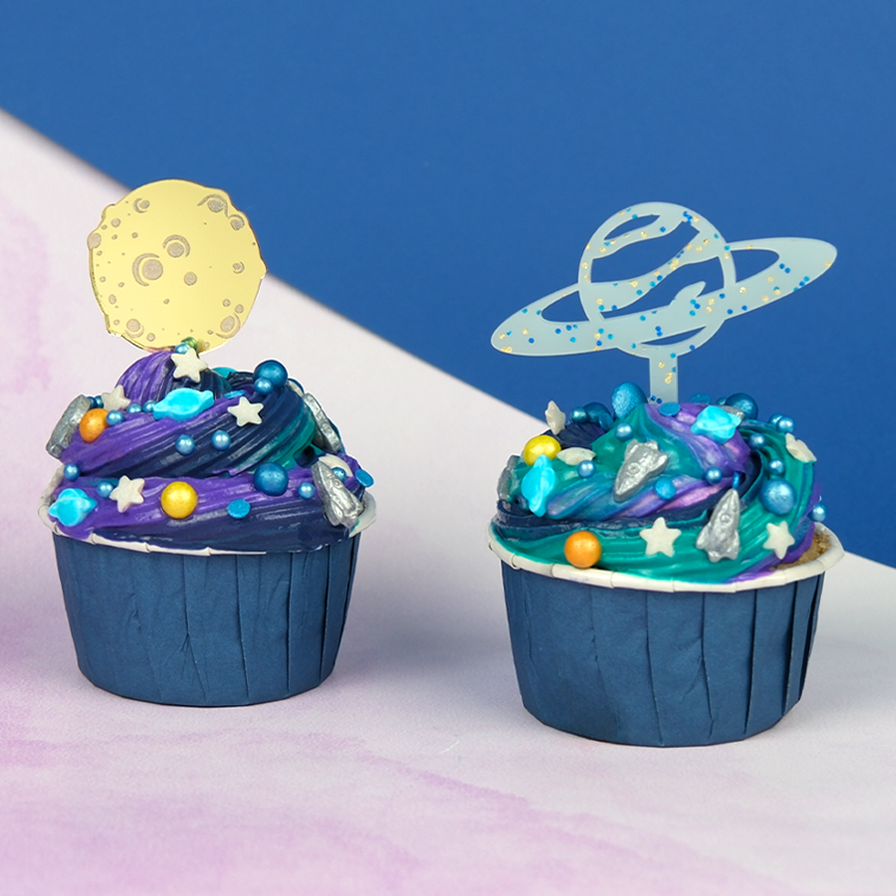 Prepare-se para uma aventura intergaláctica inesquecível! Os nossos toppers com tema do espaço são ideais para decorar cupcakes, bolos e outras sobremesas em festas de aniversário espaciais. Com designs de planetas, foguetes e estrelas, vão encantar pequenos astronautas e fãs do universo. São laváveis e reutilizáveis. Fabricado em acrílico com espessura de 3mm. Embalagem com 5 unidades.