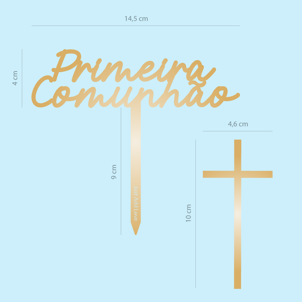 Celebre momentos de Fé com elegância e significado. Os nossos toppers são perfeitos para bolos de Comunhões trazendo um toque delicado, moderno e cheio de simbolismo. São laváveis e reutilizáveis. Fabricado em acrílico com espessura de 3mm. Embalagem com 1 unidade.