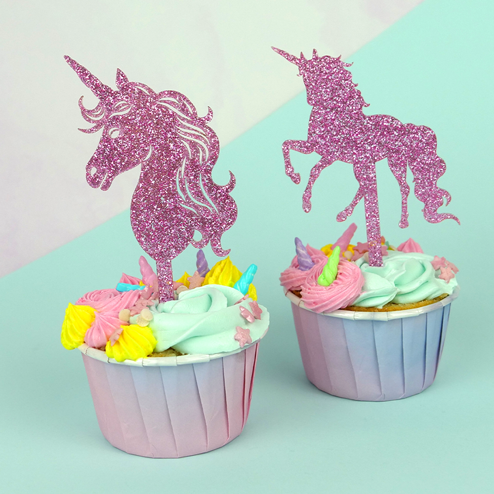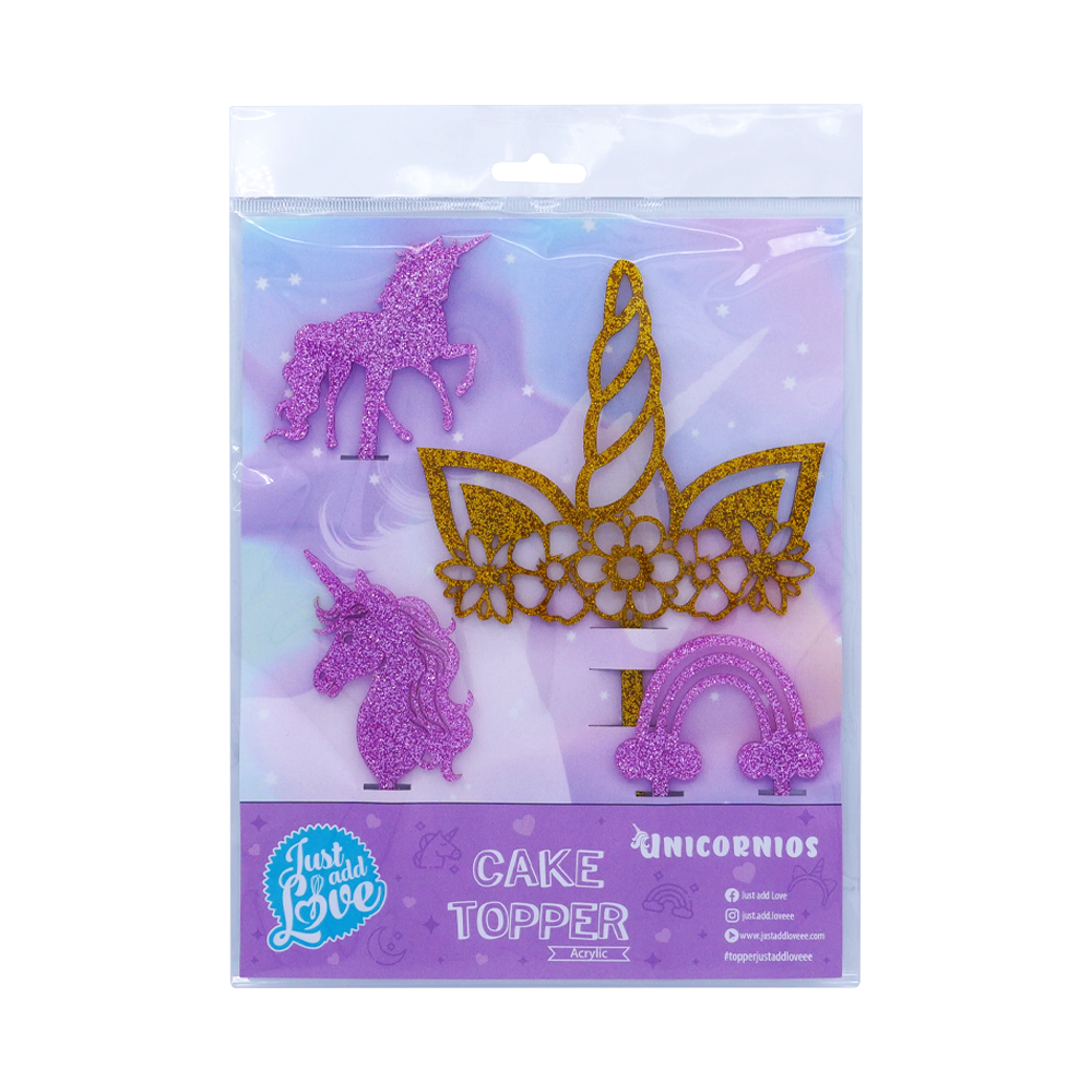 Uma festa mágica e cintilante! O topper Unicórnios traz um toque encantado para decorar cupcakes, bolos e sobremesas. Perfeito para celebrar momentos de fantasia e alegria com muito brilho. São laváveis e reutilizáveis. Fabricado em acrílico com espessura de 3mm. Embalagem com 4 unidades.