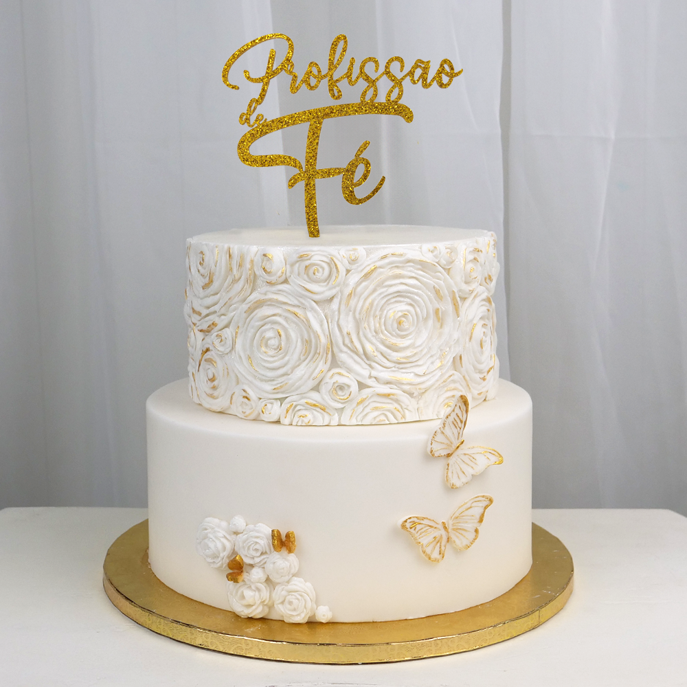Topper Ouro Glitter Profissão de Fé