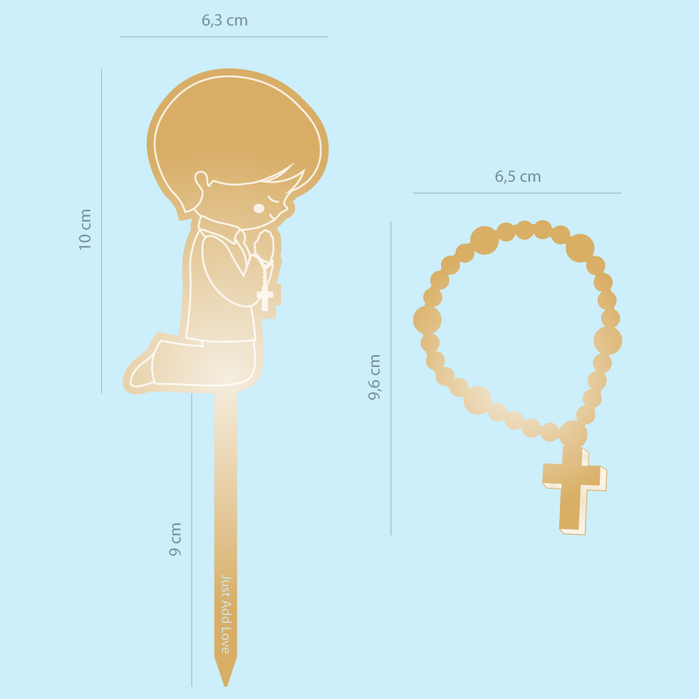 Celebre momentos de Fé com elegância e significado. Os nossos toppers são perfeitos para bolos de Comunhões, Batizados, Profissões de Fé, Crisma trazendo um toque delicado, moderno e cheio de simbolismo. São laváveis e reutilizáveis. Fabricado em acrílico com espessura de 3mm. Embalagem com 2 unidades.