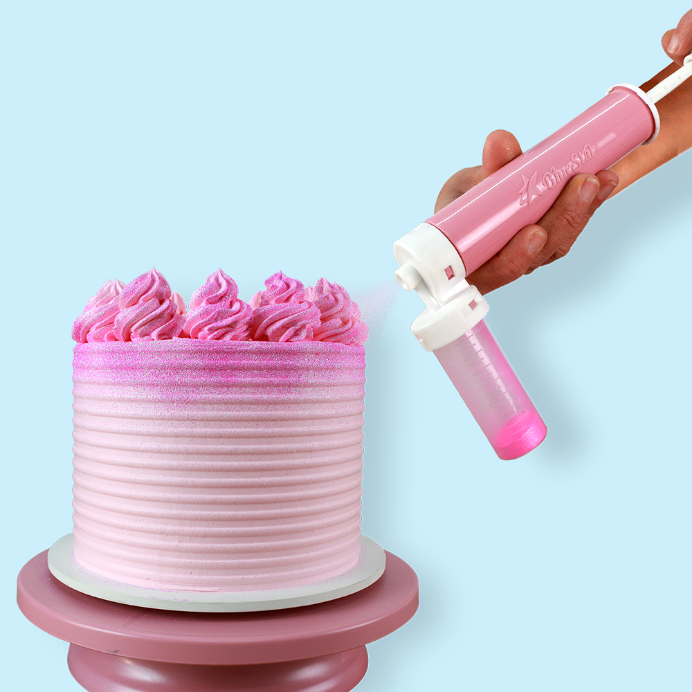 Uma ferramenta movida a pressão manual para pulverizar os seus bolos, bolachas, cupcakes entre outros.
