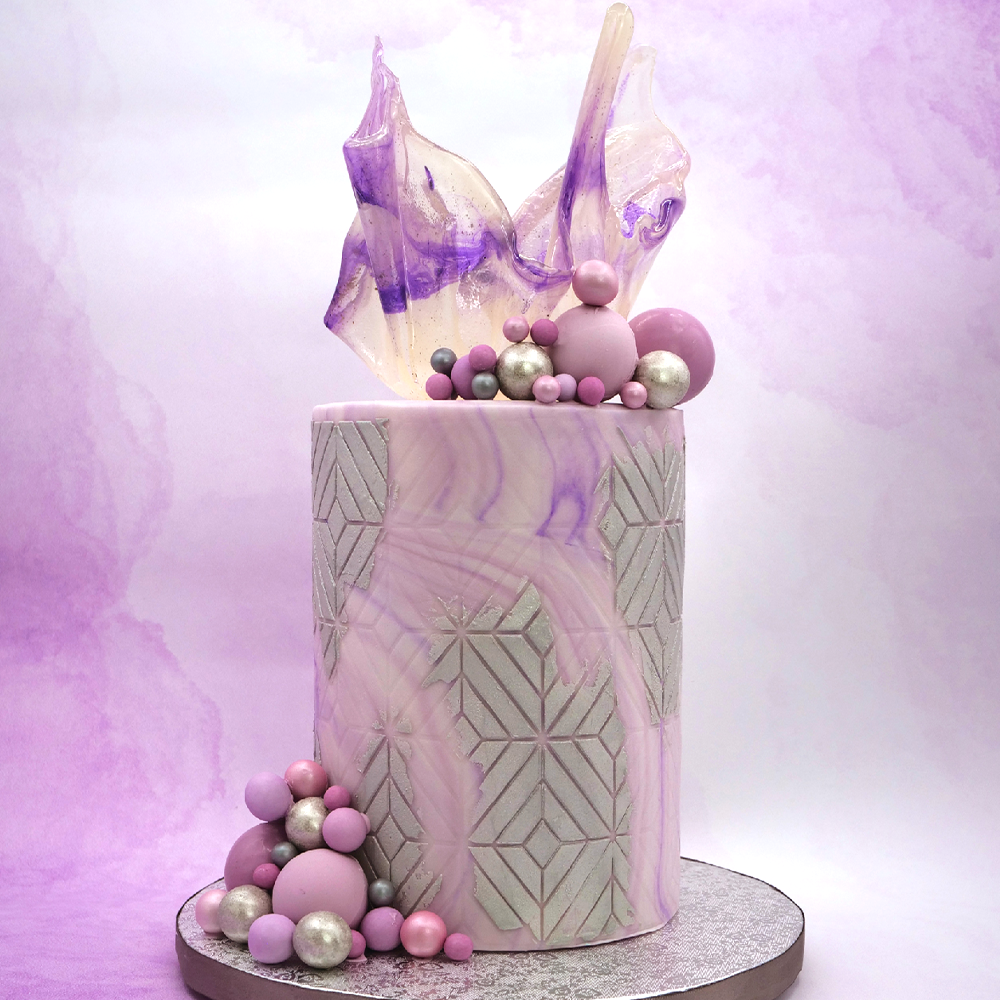 1. Aplique o Stencil sobre a superfície de um bolo/bolacha que já tenha alguma cobertura seca ou firme.